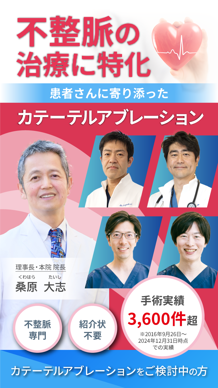 不整脈の治療には、薬を使って一時的に症状を抑える「薬物療法」もありますが、不整脈の原因を根本から取り除くには、カテーテルアブレーションによる治療が必要です。