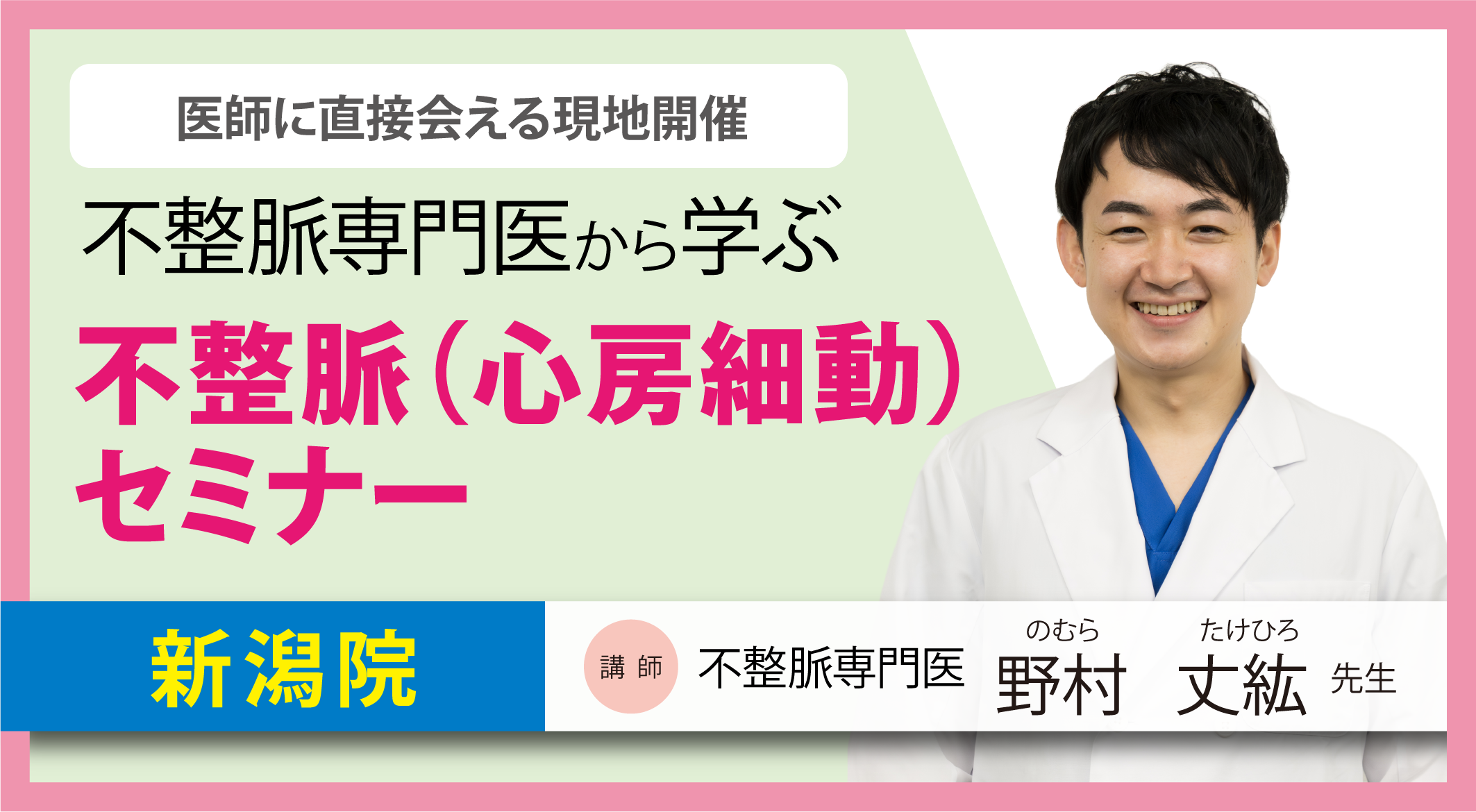 不整脈診療に携わっております、野村丈紘と申します。